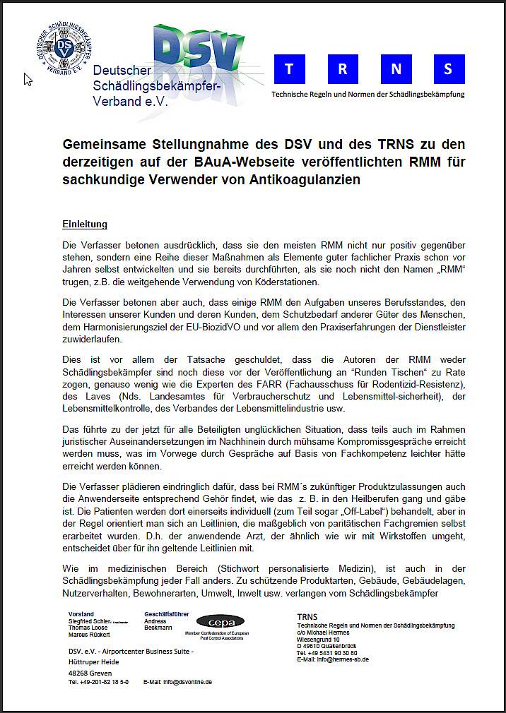Positionspapier DSV e.V. RMM Antikoagulanzien