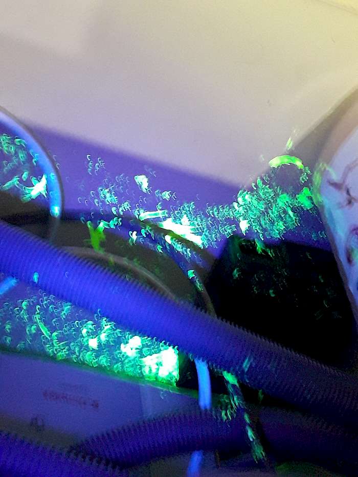 Ich war mir am Anfang nicht sicher, wozu dieses Zeug denn wirklich sinnvoll sein soll. Spuren von Nagern finde ich eigentlich immer, sofern sie denn auch da sind. In diesem einen Fall jedoch hatten wir einen Mäusebefall in der Küche, bzw. unter der Spüle trieben die Tierchen ihr Unwesen. Das war eindeutig, aber den Zugang der Mäuse fand ich nicht. Also wurden die sechs Köderboxen mit dem Trittsiegeltracker behandelt und bei meinem nächsten Besuch wussten wir auch ganz genau, welchen Weg die Mäuse nehmen: Sie kamen hinter dem Durchlauferhitzer aus der Wand, wie mir die UV-Lampe eindeutig verriet. Als ich mit der UV-Lampe in den Spülschrank geschaut habe, erinnerte mich das sehr an die Deko einer Technoparty. Fazit: Wunderbares Hilfsmittel in einigen kniffligen Fällen, genial, um den Zugang auszumachen! Aber wenn der ganze Keller in Neongrün erstrahlt, weil zu viele Tiere wirklich überall rumklettern, hat die Paste nur noch einen sehr schönen optischen Effekt. Sollte aber jeder SBK bei sich führen bzw. darauf zugreifen können. Zu guter Letzt: Es kommt beim Kunden auch sehr gut an.